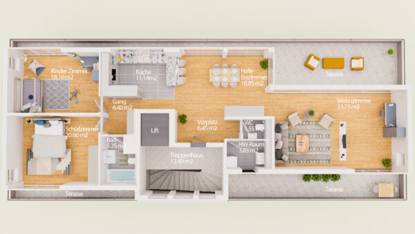 Die Herausforderungen an städtische Arbeits- und Lebensräume sind immens. Das Leben in den Gebäuden oder zwischen den Gebäuden, also in den Aussenräumen, muss gut organisiert, optimal zoniert und sexy sein. Am besten lässt sich das urbane Leben mit qualitativ hochwertigen Visualisierungen veranschaulichen. Wir setzen Ihre Mehrfamilienhäuser oder Ihre Quartiere aus der Luft, vom Boden, und mit Filmen in die Szene.